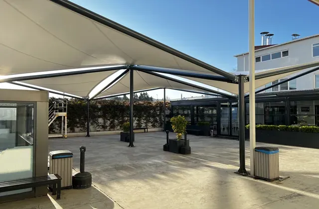 - Pergole Tente: Çelik destekli, büyük alanları gölgelendiren yapı.